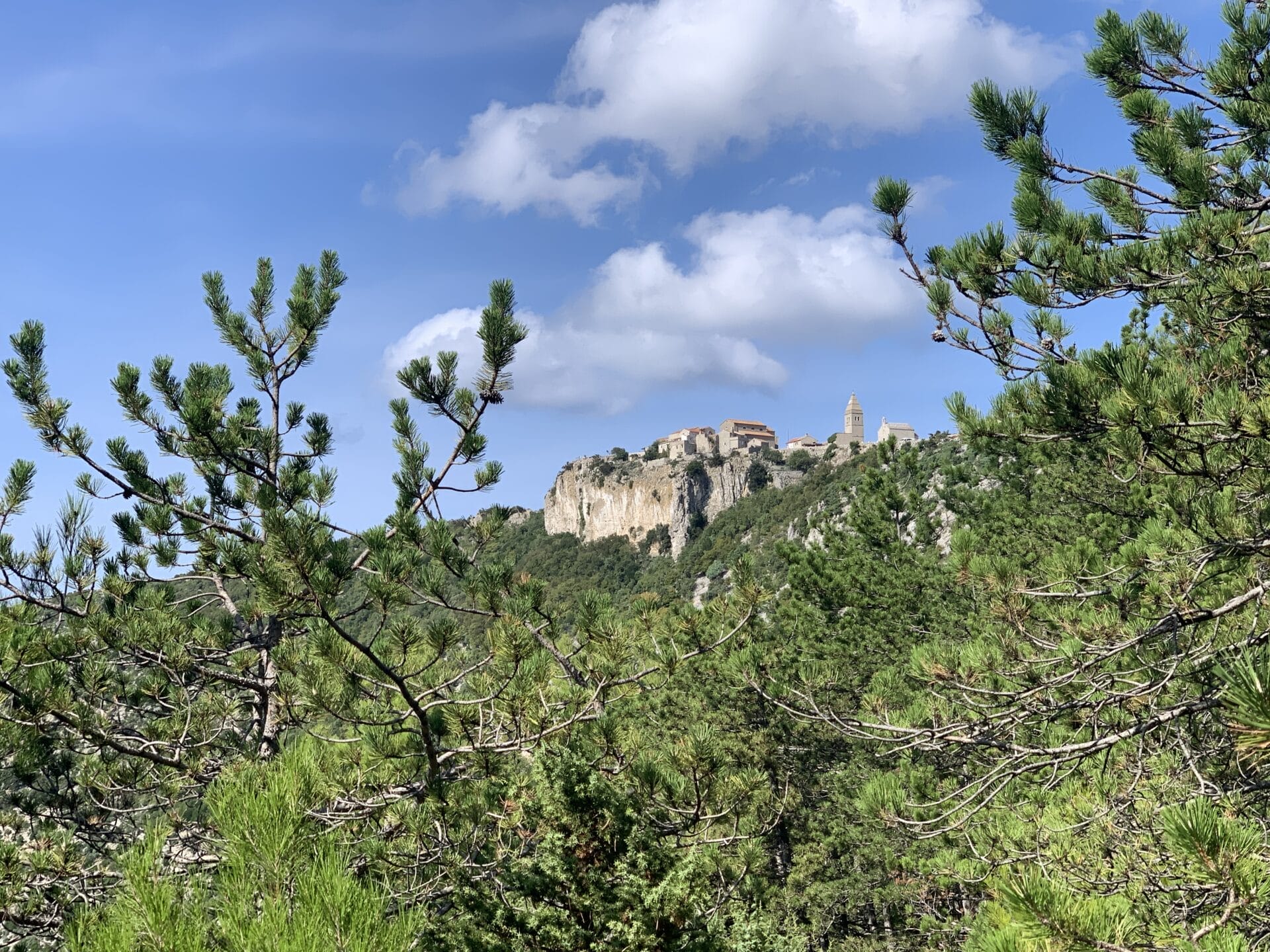 Once on Cres Island Croatia, we headed toward Sveti Ivan Beach, noted as one of the most beautiful in the Adriatic. To get there, we drove up to Lubenice, a Roman settlement perched atop a hill. The road was incredibly narrow, flanked by 8-foot stone walls—rock walls are everywhere on this rocky island.