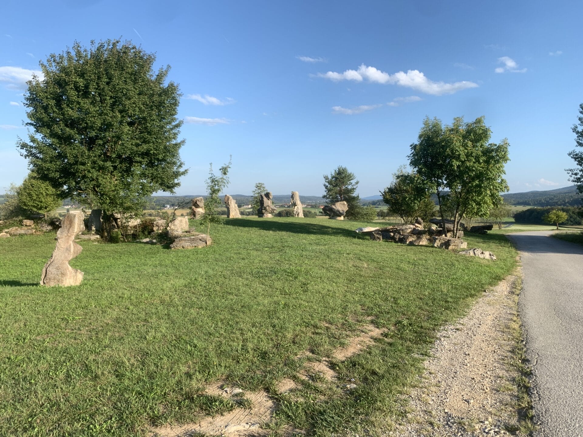 We quickly headed south for a drive to Črnomelj and the Tančki Stonehenge, which we knew nothing about but wanted to check out. Interesting stones and a sinkhole in the middle. Now back to Semič for a big dinner of steak, chicken, gravy, hashbrowns, and veggies. There was a lovely three-quarter-filled moon to light the road back.