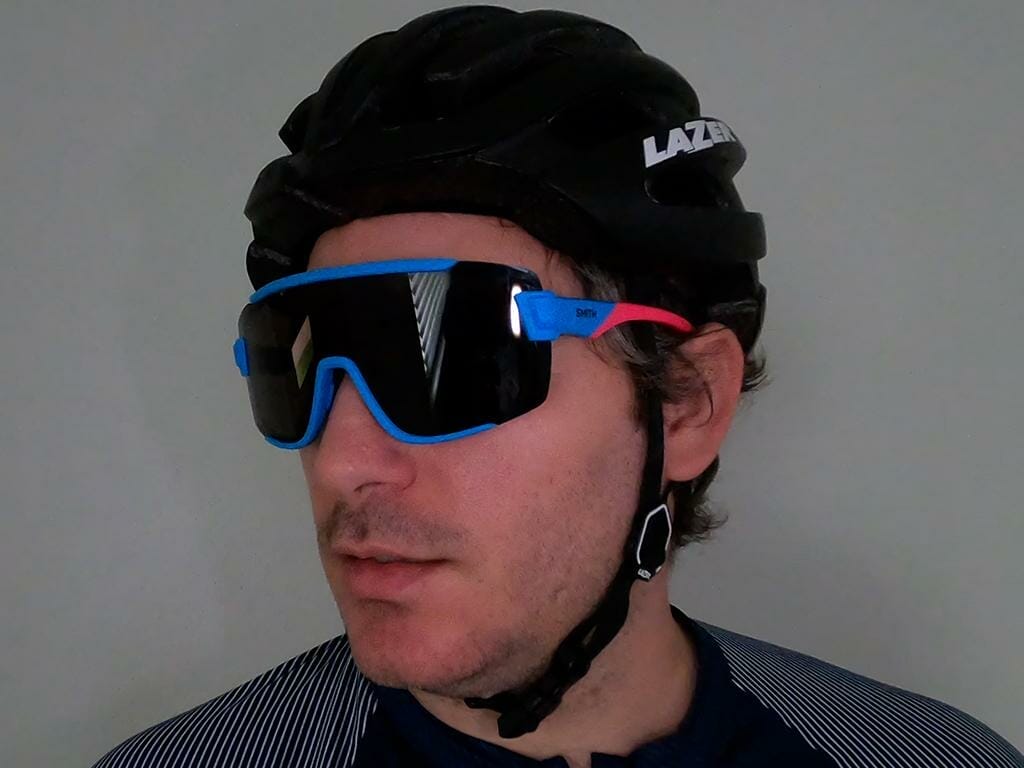The sunglasses are very light and are very comfortable for all day use. The sunglasses are not too large, and they fit comfortably under the brim of a cycling helmet. I think the glasses are pretty stylish and I would recommend them, but my preferred Smith sunglasses for road cycling are the Attack MAG MAX.